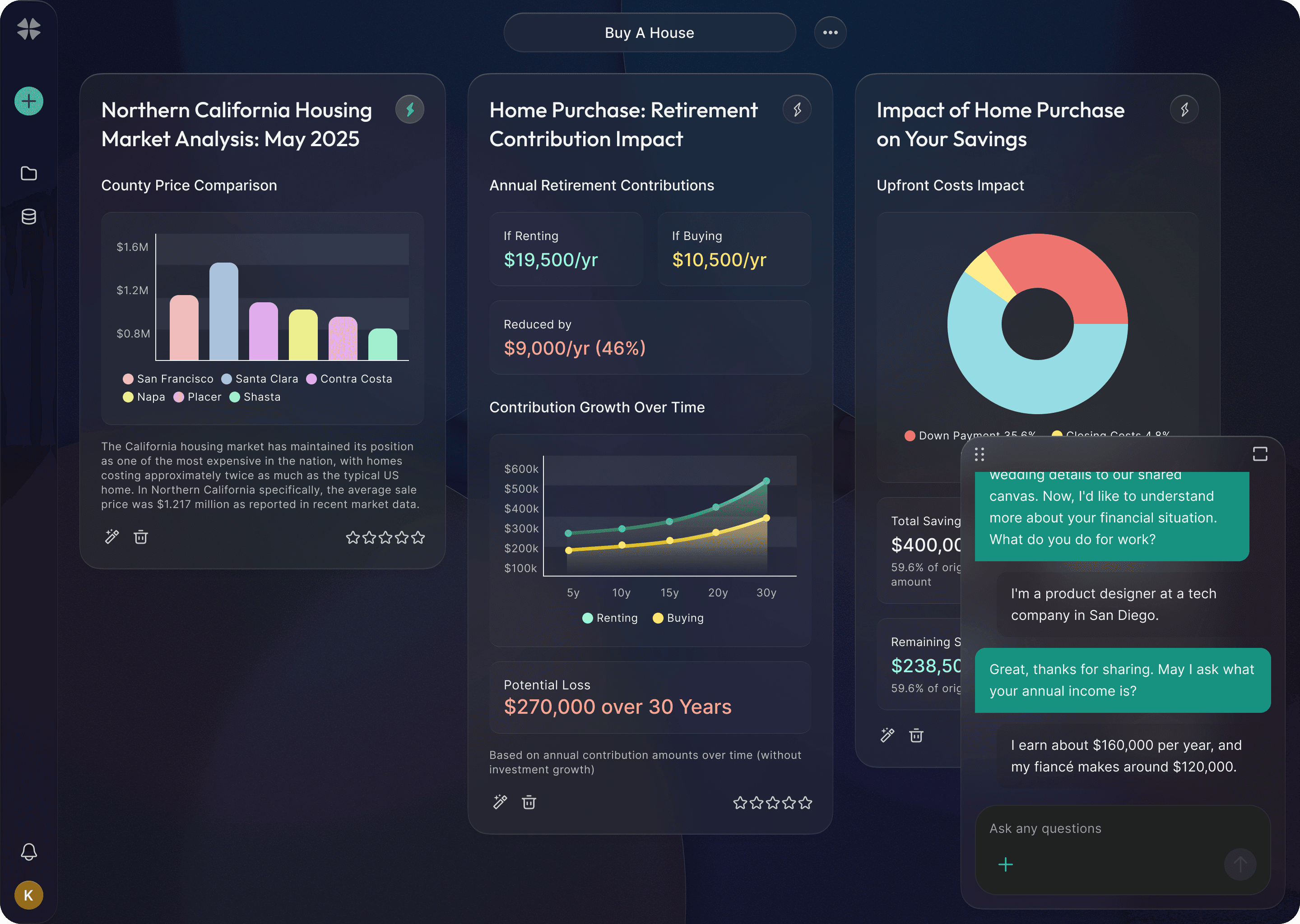 Finance is no longer a solo sport. Invite anyone into your workspace to collaborate on strategies and decisions. Set permissions, share insights, make financial planning a team effort.